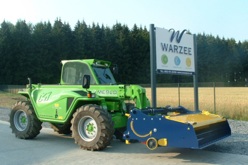 De veegmachine kan worden aangesloten op de meeste draagvoertuigen die zijn uitgerust met een voorlader of telescopische arm. Ze is uitgerust met vervangbare, aanpasbare bevestigingssystemen.